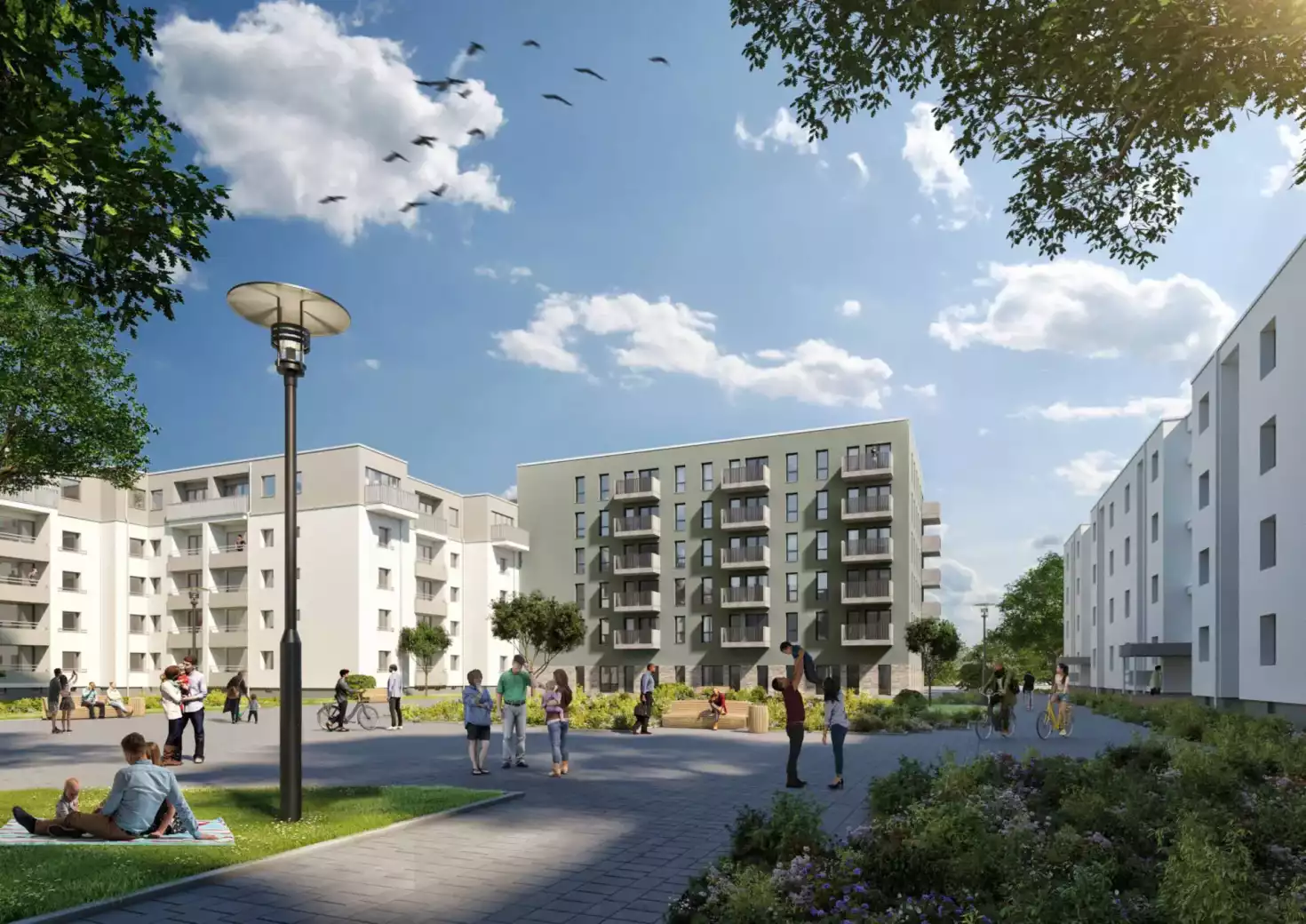 Für das Quartier Heideläuferweg / Ringslebenstraße / Mollner Weg ist die DELTA-i- GmbH in Zusammenarbeit mit dem Büro Gibbins Architekten im Rahmen der in den 70er Jahren errichteten Wohnbebauung tätig. Dabei wurde in Zusammenarbeit mit der GEWOBAG ein Konzept entwickelt, welches neben der Sanierung eine teilweise Aufstockung der Bestandsbauten vorsieht. Entsprechend wurde geplant, dass mit dem Modernisierungskonzept eine Anpassung der Gebäudestrukturen, eine energetische Sanierung durch Strangsanierung und Aufwertung der Gebäudehülle sowie der Außenanlagen incl. Erschließung erfolgt. Dementsprechend ist die DELTA-i GmbH mit der Planung der Technischen Anlagen der KG400 für das Ostfeld sowie mit der Bestandsaufnahme und Neuplanung der nichtöffentlichen Erschließung für das Ost- und Westfeld beauftragt. Es werden im Rahmen einer nachhaltigen Quartiersentwicklung ca. 1000 Wohnungen im Bestand saniert und durch Dachaufstockung und Neubau ca. 250 neue Wohnungen auf dem Ost- und Westfeld integriert.