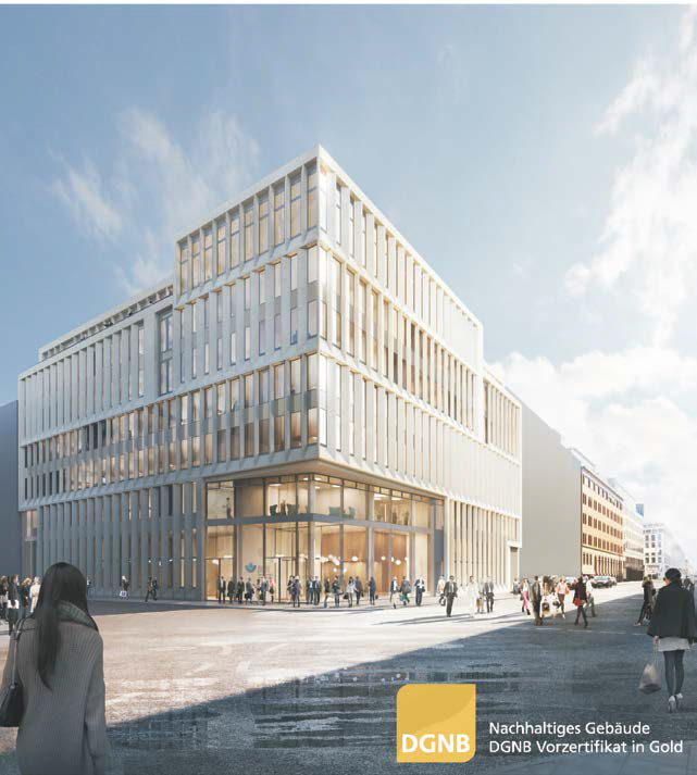 Für den Neubau ist die Gebäudezertifizierung des DGNB im Gold-Standard einzuhalten.